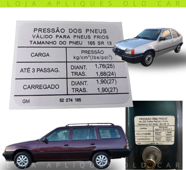 ADESIVO PRESSÃO E MEDIDA DOS PNEUS KADETT E IPANEME L, SL / PNEU 165 SR13