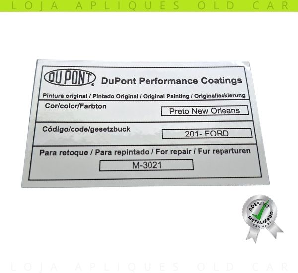 ADESIVO PRETO NEW ORLEANS / COR PINTURA PARA LINHA FORD / SELO DA LATARIA