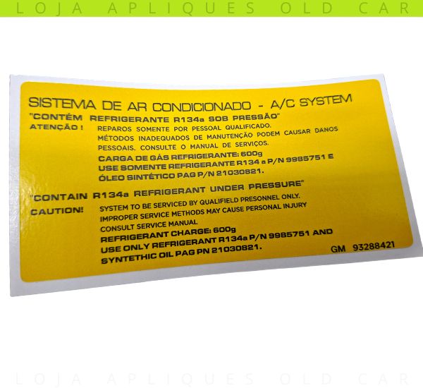 ADESIVO SISTEMA DE AR CONDICIONADO GM / INDICAÇÃO DA CARGA GÁS REFRIGERANTE 600G