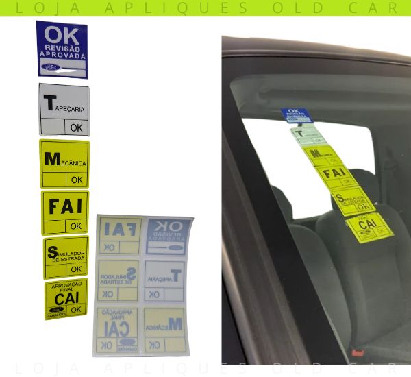 ADESIVOS CONTROLE DE QUALIDADE PARA-BRISA F-250 / KIT SELOS OK E REVISÃO APROVADA
