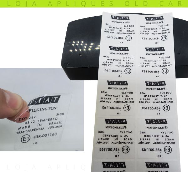 SELOS TRANSPARENTE DECALQUE VIDROS FIAT PILKINGTON / SELO INDICAÇÃO TRANSPARÊCIA 70%